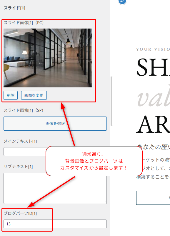 カスタマイズからメインビジュアルの設定