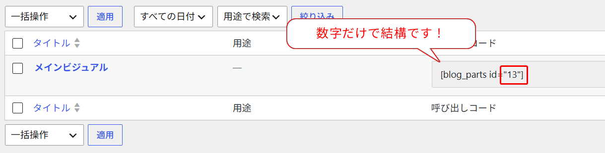 ブログパーツのIDを控えておきます。
